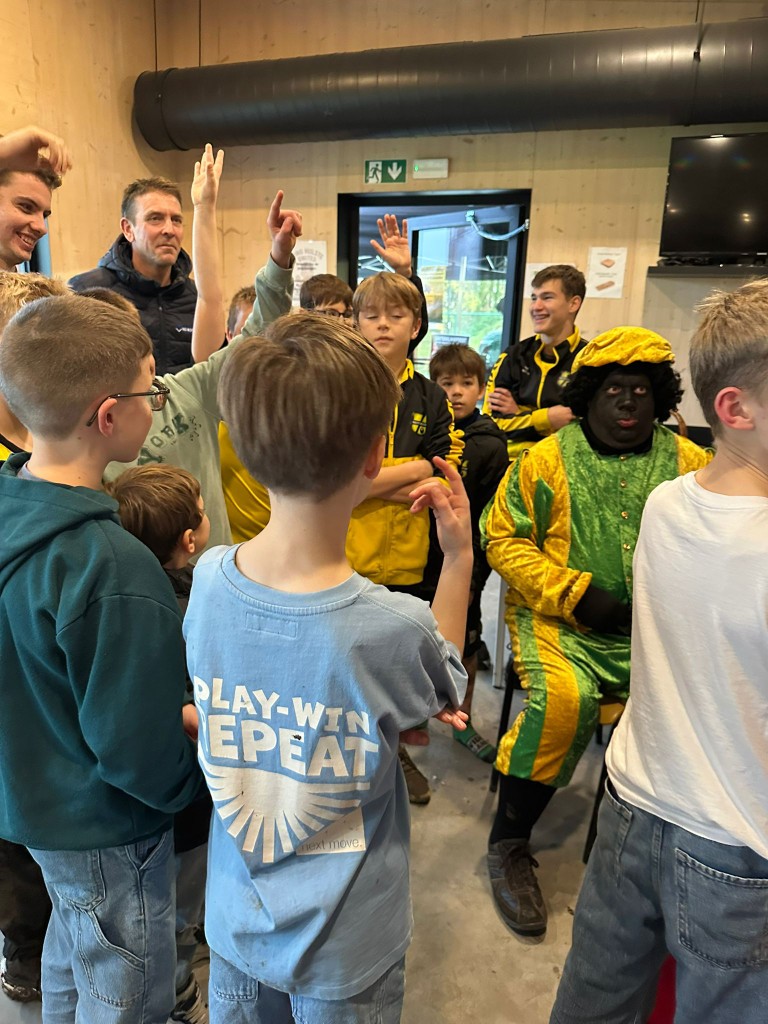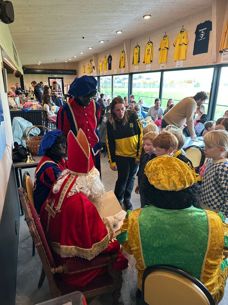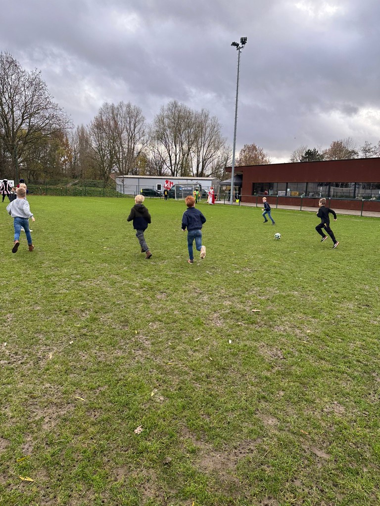 Per ploeg werden de kinderen verwacht bij de Sint. Doordat het snel ging heeft de organisatie na de u9 een pauze ingelast, en hebben de pieten en Sint wat gevoetbald met de kindjes.